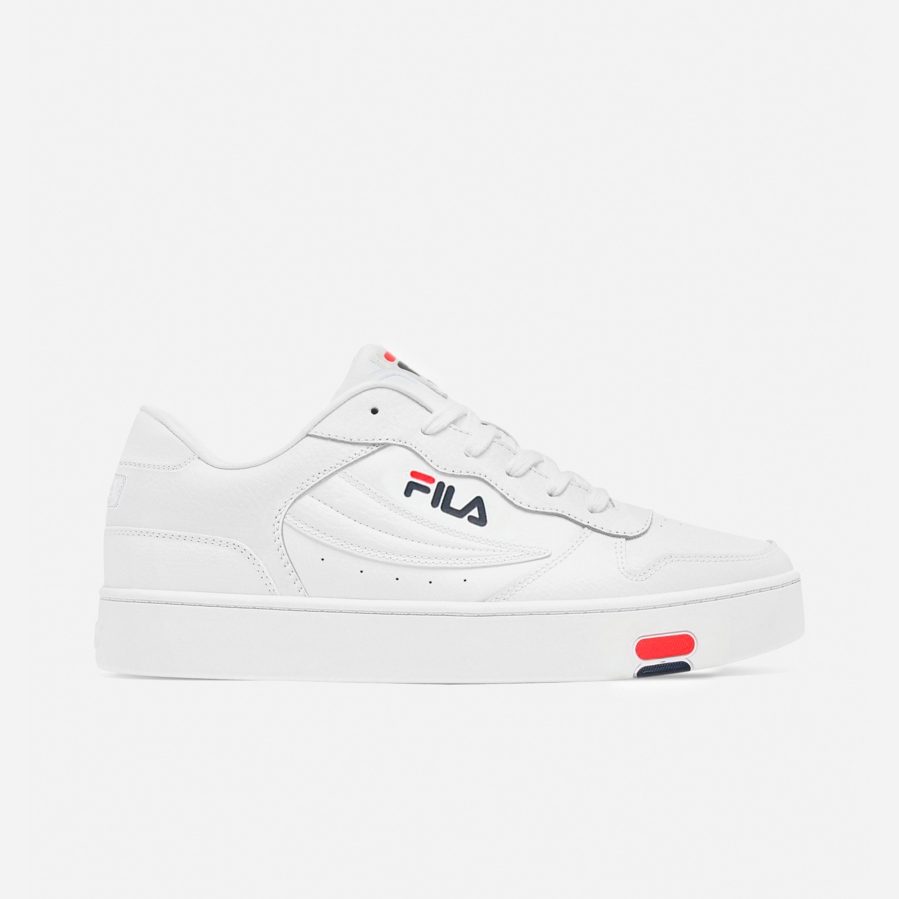 Su suela ligera y antideslizante ofrece el soporte ideal para el uso diario, mientras que el diseño limpio y atemporal permite combinarlos fácilmente con jeans, pantalones deportivos o ropa urbana. El icónico logo FILA con detalles en azul y rojo le da un toque distintivo que nunca pasa de moda.